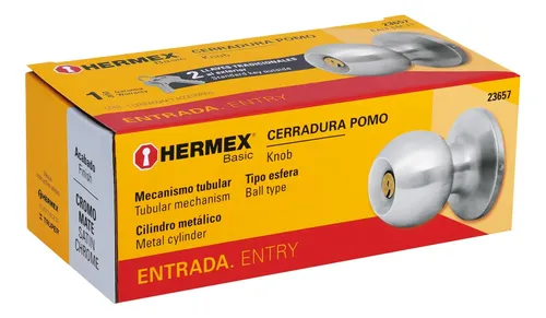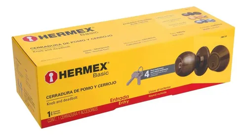 La cerradura de pomo Hermex Basic modelo BAL-LB-EP es la solución ideal para quienes buscan una protección confiable con un diseño elegante. Diseñada específicamente para puertas de entrada (Entry), esta cerradura tipo esfera destaca por su acabado en latón brillante, que aporta un toque de distinción a cualquier puerta de madera o metal.